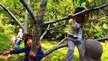 と、川への道すがら、電車ごっこのKちゃんとRちゃん。