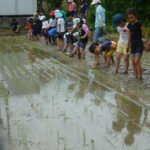 田んぼでは、素足になり嫌々ながら入る子もいましたが、ゆったりとした時間の中で、カエルを見つけたり、 田んぼの泥の感触を十分に味わい楽しんでいました。