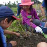 その後、たくさんのじゃがいもを掘り、慣れない手つきでさつまいもの苗を植えました。