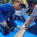 流しそうめんでは、自分達でそうめんの台を削ったり、箸やお碗を作りました。