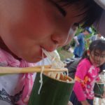 友達にも流れるそうめんが、いくように気を配る優しい姿も見られました。