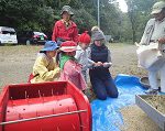 ホリデーの森のおじさん達が、とれた稲の穂から