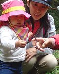 カマキリを初めて触れたMちゃん。