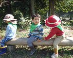 丸太の上でも電車ごっこ。