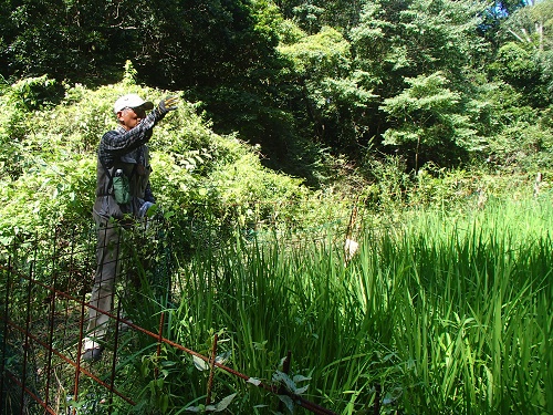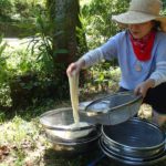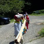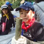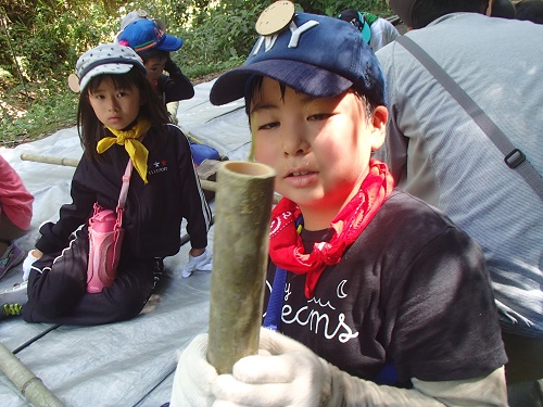その後流しソーメン用の竹の樋作りを皆で行います。