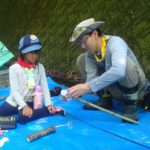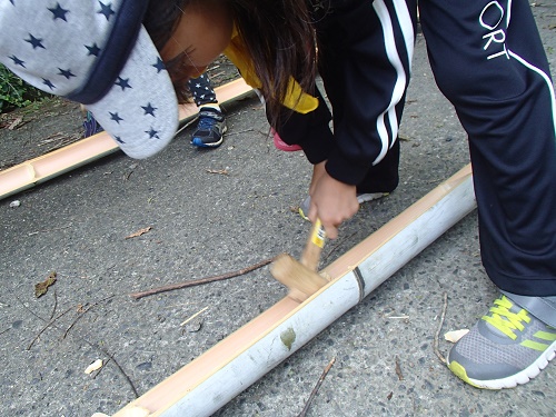 午後は水鉄砲作り、布、スポンジをタコ糸で結ぶのがなかなか大変だったようでした。