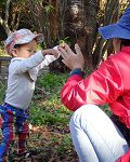くしゃくしゃと落ち葉の感触を楽しんでいました。