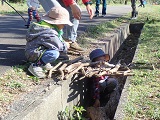 先日、ここに橋を作ったR くん。