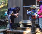 長い丸太を見ると、渡らずにはいられない子ども達。