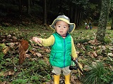 大きな落ち葉を見つけて、いないいないばあっ!