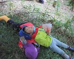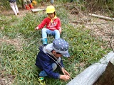 おうちへの道中で、ススキの穂や、粘土の土があるところで材料集め。