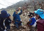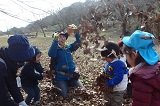 ひとりが落ち葉シャワーを始めると、みんなでそれ~!