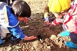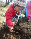 スタッフが掘ってみると、一緒にホリホリ。
