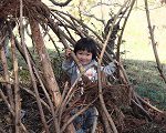 杉林には、誰かがつくった秘密基地。