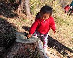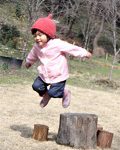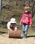 切り株に穴を見つけたMちゃん。