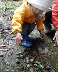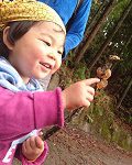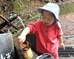 Kくんは、キクラゲを竹筒にいれて、お水をそこに注ぐと