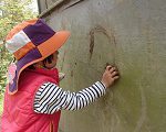 Kちゃんは、さすがベテラン!どろんこで、お絵描きを
