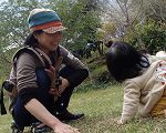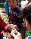 最初、男の子たちは、どろ団子をさわるのに