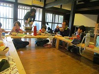 みんなできのこスープ作り。