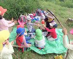 幼稚園の壁がなくなって、やりたい遊びを一緒にする