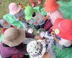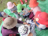 幼稚園の壁がなくなって、やりたい遊びを一緒にする