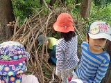 6月、一番盛り上がったのは、杉林の秘密基地作り。