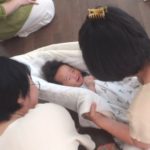 途中であかちゃんの体を解放してあげる動きも取り入れて、