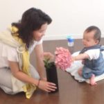 ママの「きれいだね」の言葉をしっかり聞いています。