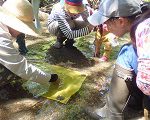 バンダナを沈めるスタッフの姿にお母さん達も興味津々。