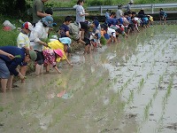 田んぼでは、カエルやたにしの卵を発見し、大騒ぎ!
