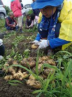 午後は、ジャガイモの収穫とサツマイモのつるさし。