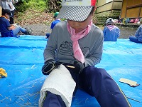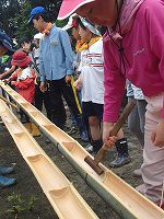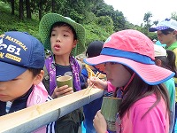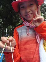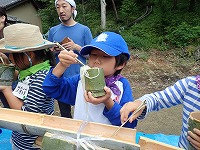 長い竹が半分に切れ 流し台ができ子ども達の顔はほころびます♪