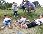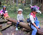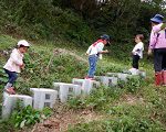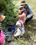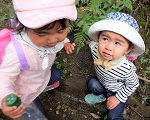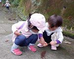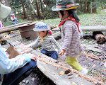 朽ち木の屑を使って、1才さん達が遊び始めました。
