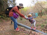 このパイプの上を一本橋のようにして歩くのが