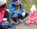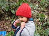 真剣な顔して、拾った木の実を