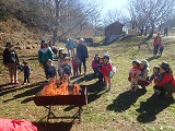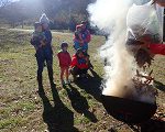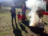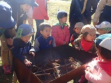 厚く盛った落ち葉の中は、赤い炎がチロチロ。