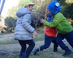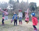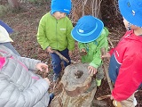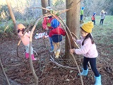森にあるもので頑張る子ども達。