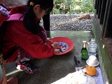 道中、ちゃんとお供えを持ってきてくれた子ども達。