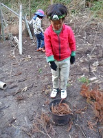 木登りも輪投げも楽しんで、帰りに秘密基地を見にいってみた。