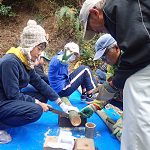 小刀やのこぎり、鎌などの道具の使い方を覚えます。
