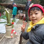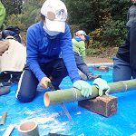 スタッフの指導で竹切りから始めます。