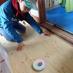 お昼を食べた後は、ミズからCDコマの作り方を教えてもらいました。