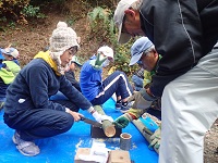 小刀やのこぎり、鎌などの道具の使い方を覚えます。