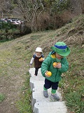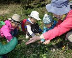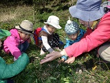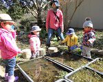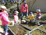 グリーンクラブさんの睡蓮の鉢で、お魚釣りごっこ。