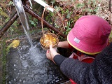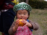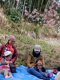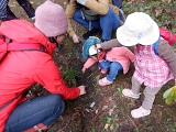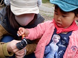 食後の遊びで、フクシアのお花を見つけたHちゃん。