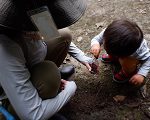小さなヒノキボールをいっぱい集めているGくん。