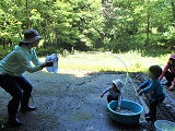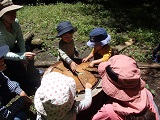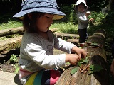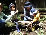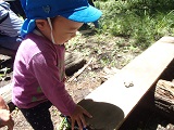 炭焼き小屋前の丸太の広場になぜか集まって。