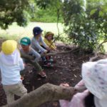 初めての場所でも虫や物の発見を楽しむやっほのみんな。
