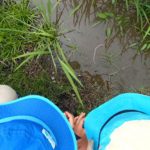 田んぼに放してみたけれどなんだか苦しそうです。