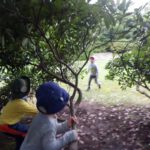 みんなで木の枝をゆさゆさ。